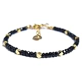ブラックスピネル3mm(ボタンカット)、ゴールドカットビーズ、アジャスター、留め具(金メッキ) 約3.0センチのアジャスターで調節できるので、スタイルに合わせて自由に調節して頂けます。手首サイズは約15~18cmの間で調節可能です。 付属品:化粧箱、ミニポーチ、浄化用さざれ水晶(約7g)、お守りカード付。 天然石を使用しているため、個々の色合いや模様などが画像と若干違う場合がございます。また、お客様のご覧のモニターによっては、画像の色合いと多少異なる場合がございますので、予めご了承ください。 パーツ類(金属、金具等)は予告無く変更される場合がございます。